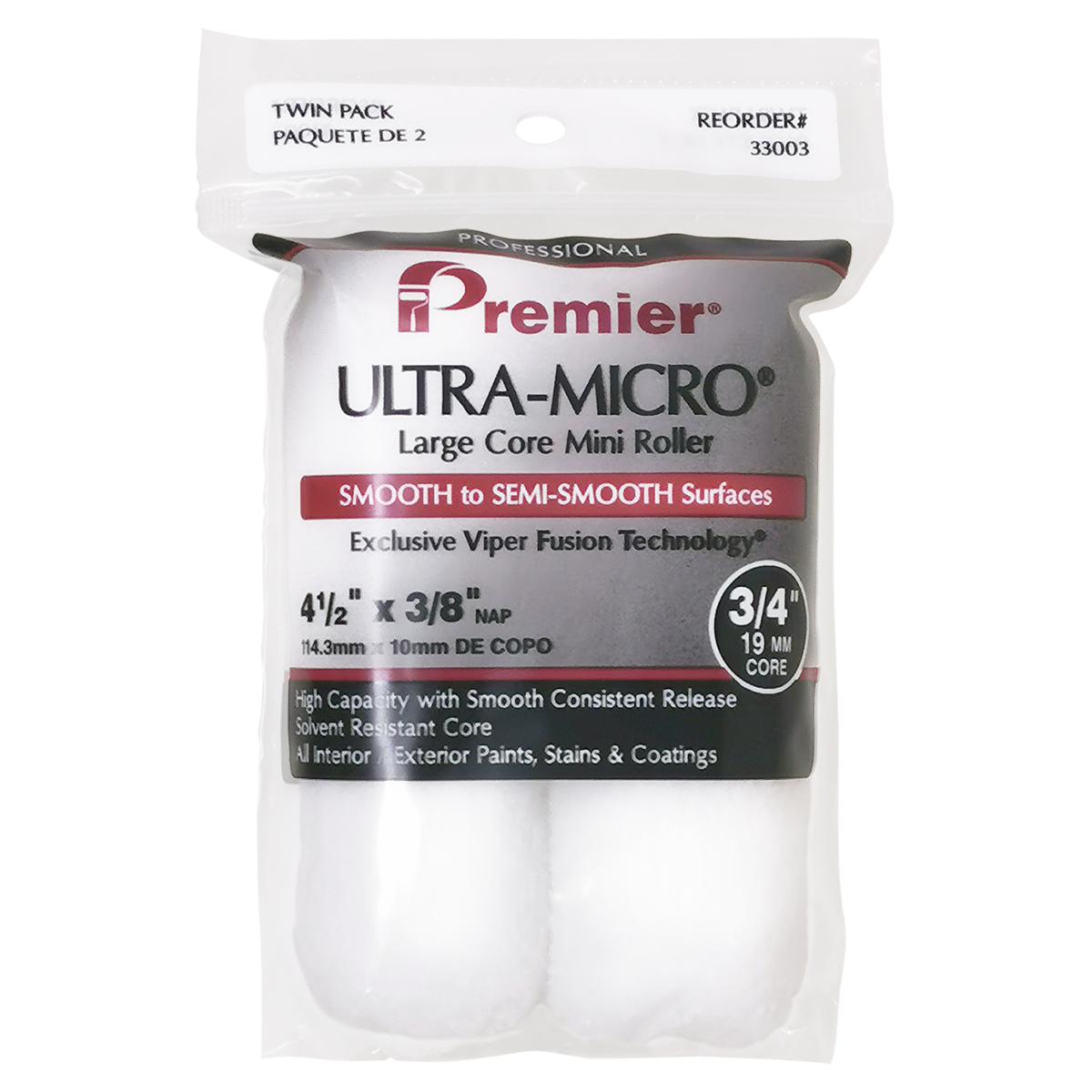 • Large core (3/4″) mini rollers hold more paint for maximum surface coverage